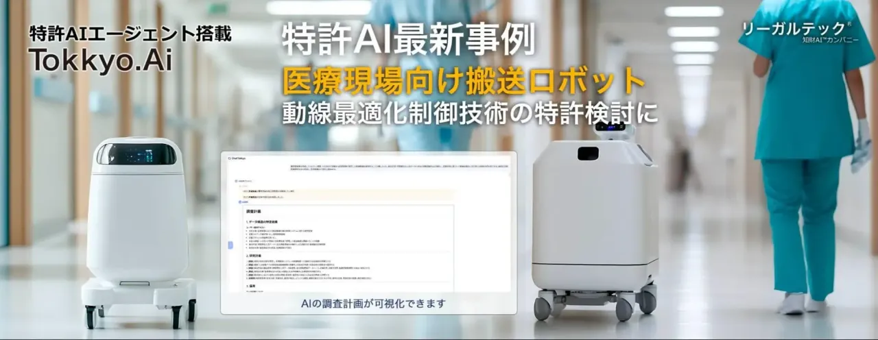 2026年2月、リーガルテック株式会社は、医療現場向け搬送ロボットの特許検討において、自社の特許支援AIプラットフォーム「MyTokkyo.Ai」が活用された事例を発表した。
