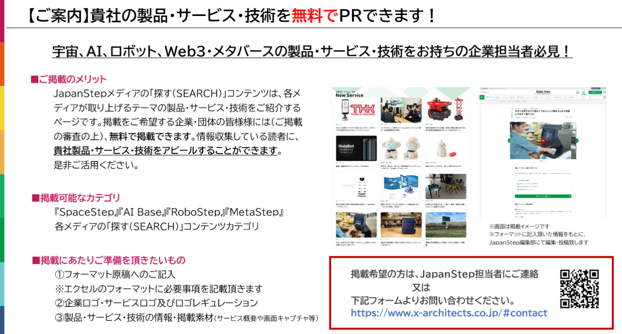 掲載希望の方は、お問い合わせフォームよりRoboStep担当者までご連絡ください。