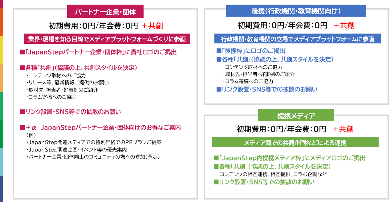JMP(JapanStep Media Project)の趣旨にご賛同頂き、パートナー企業・団体に参画頂きましたら、