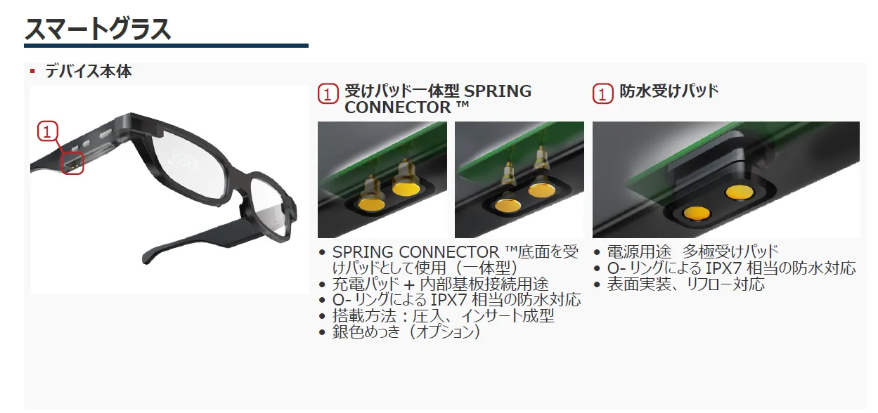 ストレスの無い使用感が不可欠となるスマートグラスに、スプリングコネクタは必須