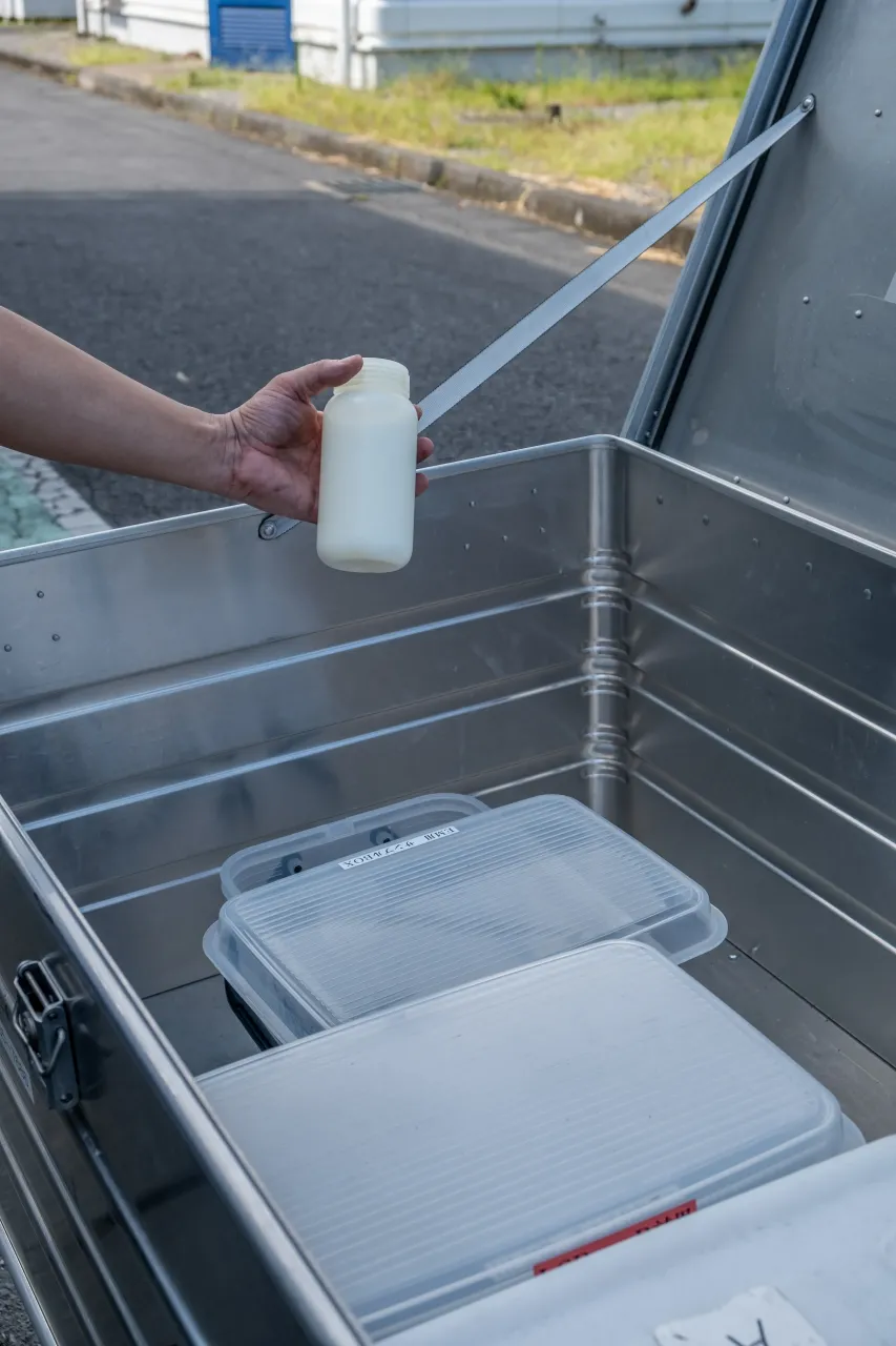 ポイントに到着すると荷台上のボックスを開けてサンプルを出し入れする