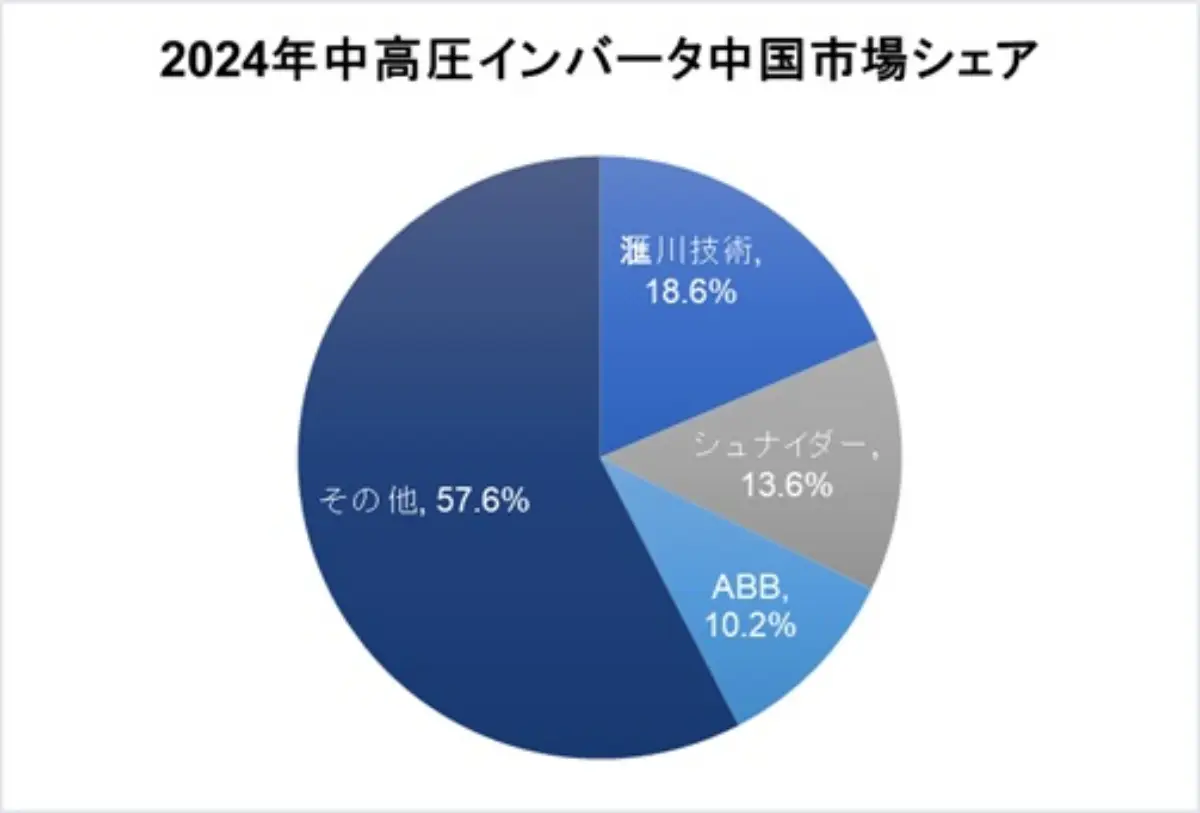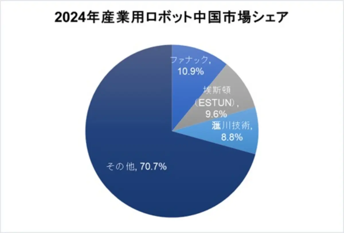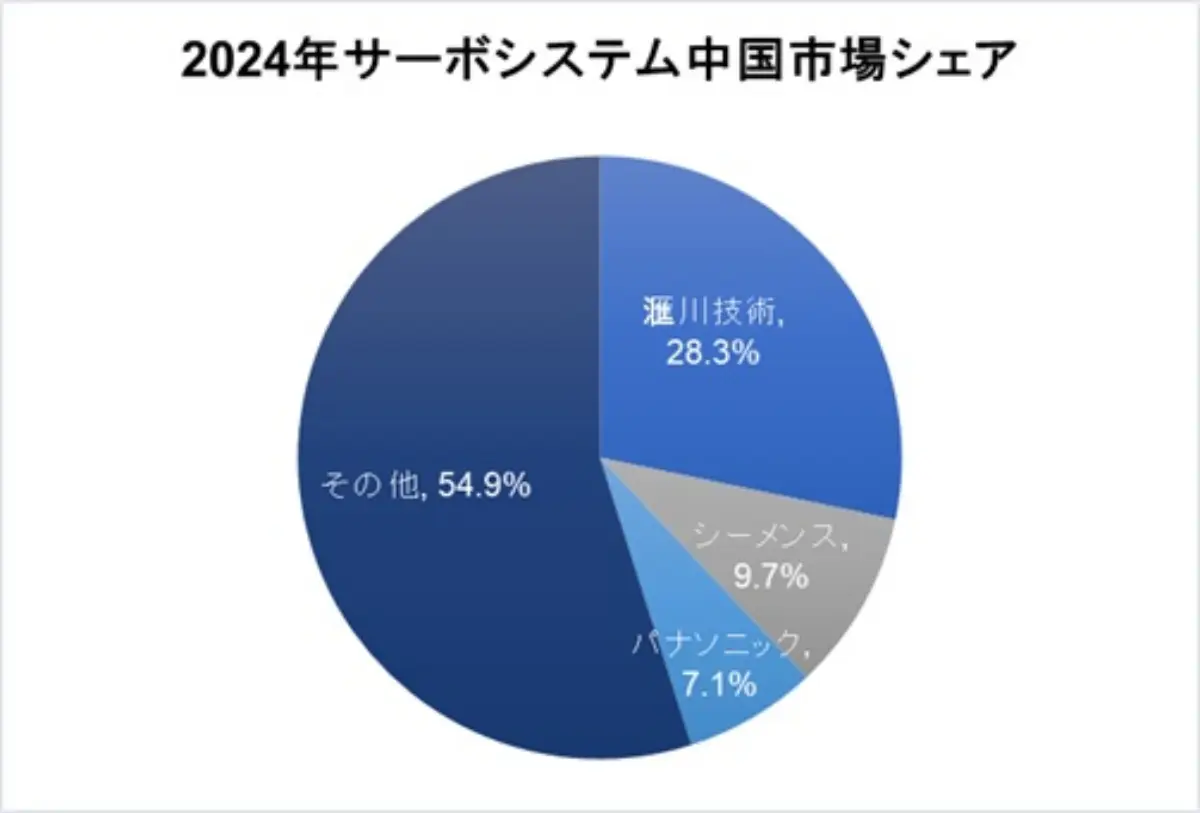 しかしここ数年、滙川技術をはじめ中国系FA企業が急激に力をつけてきており、これまでの外資独占状態を打破するにもはや至っています。具体例を挙げると、2024年におけるサーボシステムの中国市場シェアで滙川技術は28.3%を占め、既に独シーメンス(9.7%)、パナソニック(7.1%)を下してトップとなっています。競合ひしめく産業用ロボットの中国市場シェアでも滙川技術のシェアは8.8%で3位につけており、FA業界における遍く製品や要素部品のシェアでもれなく上位につけています。