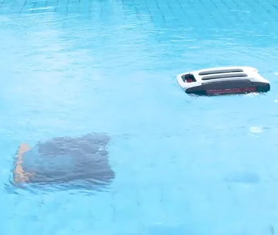 青々と透き通るホテルのプールや公共の大型水泳施設。その美しい景観の裏側には、地道な清掃作業が隠されていた。従来の業務用プール清掃機は、電源供給のために長いケーブルを引きずる有線式が主流であり、水中でケーブルが絡まるトラブルやプールサイドでの転倒リスク、さらには機体回収時の感電や落水といった安全面の懸念が常につきまとっていたのだ。