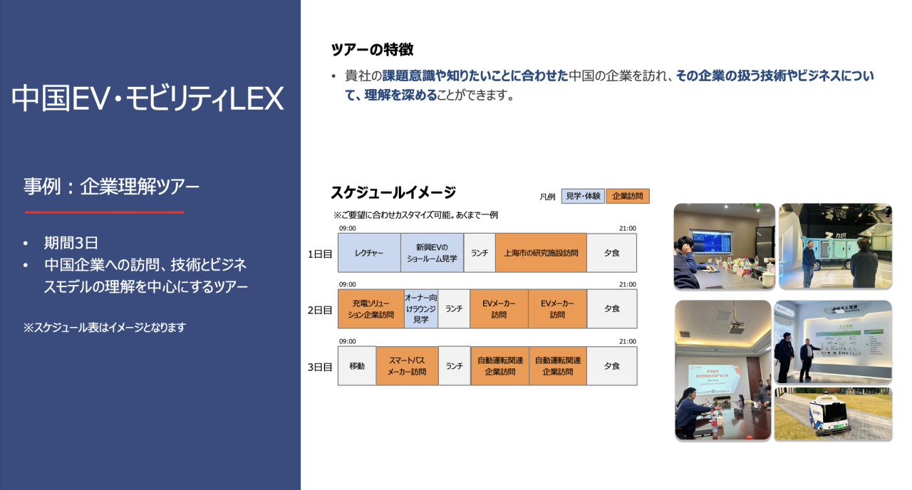 中国のEV・自動運転・AI・エネルギー分野をテーマに、実際の企業訪問・体験・現地交流を通じて、中国モビリティ産業の最前線を肌で感じることができるプログラムです。
